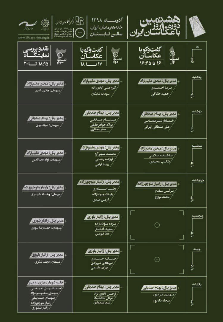 هشتمین دوره همایش ده روز با عکاسان ایران ۱۰ آذر ۱۳۹۸ | ۱۴:۱۲ کد : ۳۰۶۸ اخبار ارسال به دیگران نام شما ایمیل شما ایمیل دریافتکننده ارسال انصراف تعداد بازدید:۷۰۷ هشتمین دوره همایش ده روز با عکاسان ایران از هشتم تا هجده آذرماه در خانه هنرمندان ایران برگزار می شود.